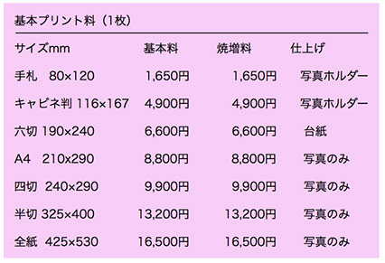 基本プリントはご希望のサイズをお選びいただけます