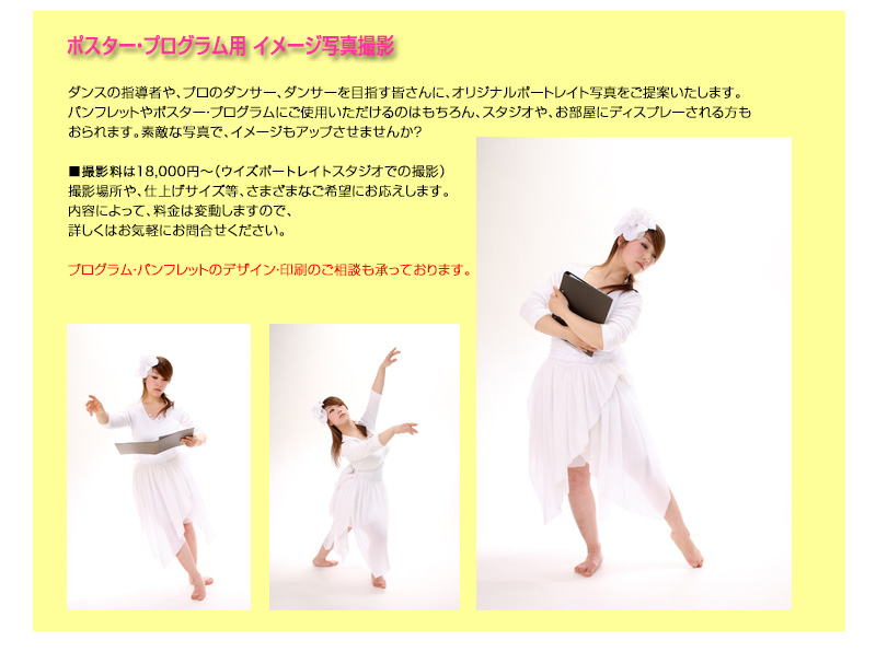 ダンスの指導者や、プロのダンサー、ダンサーを目指す皆さんに、オリジナルポートレイト写真をご提案いたします。