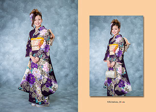『振り袖』と『洋服』やスタイリッシュな撮影分など、いろいろな20才の表情を1冊に素敵にまとめます。